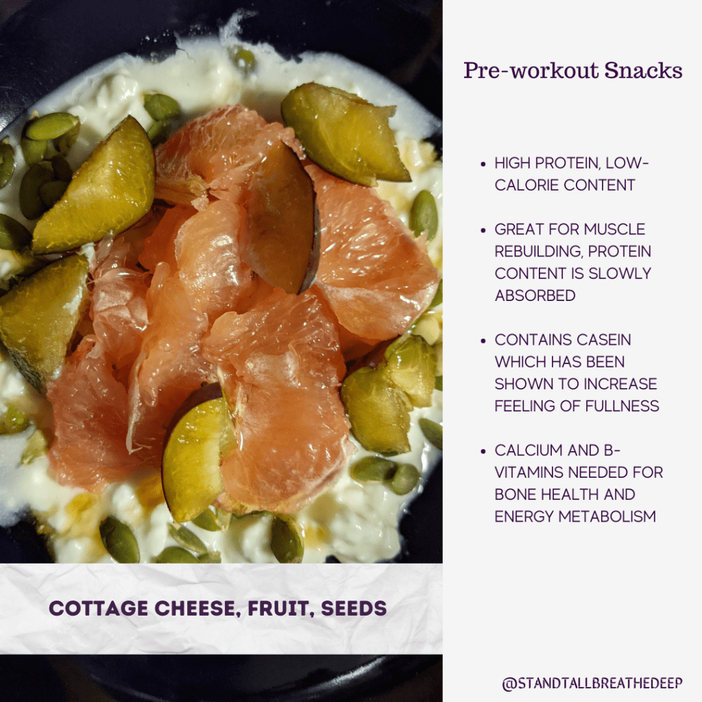 Cottage cheese is also popular as a post-workout snack. It contains both whey protein (replenishes muscles quickly after a workout) and casein protein (a protein that is slowly absorbed). I use the low-fat variety to keep calories from piling. Fat slows down our digestion it’s best to keep it low before workouts. Add fruit, seeds, honey, and granola to power your HIIT workouts with additional carbs.