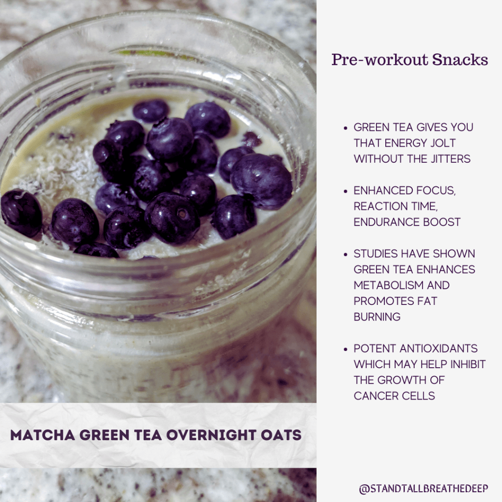 Studies have shown that green tea enhances metabolism and promotes fat burning. It contains a potent antioxidant, epigallocatechin-3-gallate (EGCG), that may inhibit the growth of cancer cells. Add it to overnight oats with fresh fruit and honey for both quick and slow energy release.